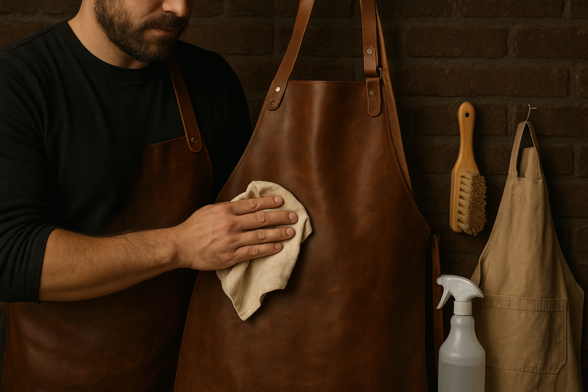 - Leather aprons require regular conditioning to stay flexible and crack-free.