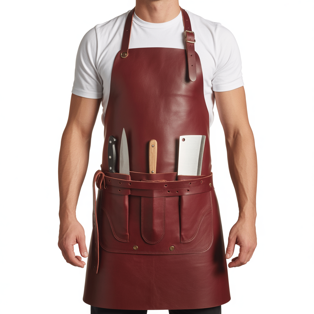 Adding to your collection of unique tools is the Maroon Comb Press Barber Leather Apron, not only for its stunning beauty but also for its unparalleled precision and polish. Every handcrafted primitive apron Murphy slays in the apron, or expansive bulky Cleavers, or any difficult preparatory pose does nothing but make the apron shine in its smooth blades, dagger, and splash-resistant and structurally secure anti-nick leather. Along with this, the apron elevates your polish and glory on the outside while you so humbly focus and labour. For butchers who take pride in their craft, the Clay Edge Rend Butcher Leather Apron for sale is the ultimate balance of form and function.