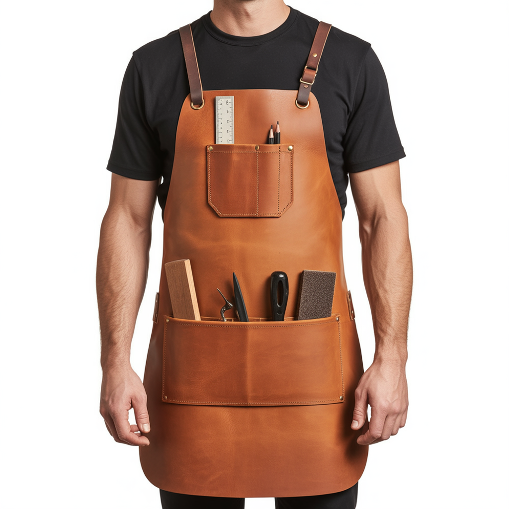 This apron is made from high-quality full-grain leather, which outlasts standard fabric aprons in comfort and style. It’s ergonomic and designed for tool storage, which is perfect for professionals.