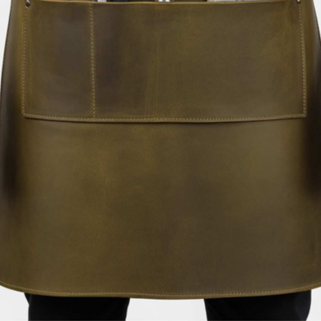 The Olive Tan Snap Butcher Leather Apron by Apron Forge goes beyond fashion for chefs and professionals within the culinary field. This apron has been constructed for optimal precision, efficiency, and heavy-duty use. It absorbs any spills and splashes, as well as knife contact for protective purposes. Ready to buy Olive Tan Snap Butcher Leather Apron? Apron Forge provides a high-quality apron designed for experts who take their profession seriously.